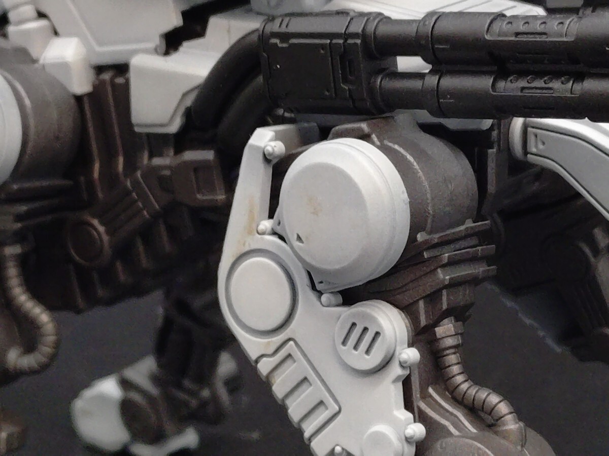 装甲の塗装は黒立ち上げで混色した白を吹き付け。本体は焼鉄色、黒い個所は黒鉄色。