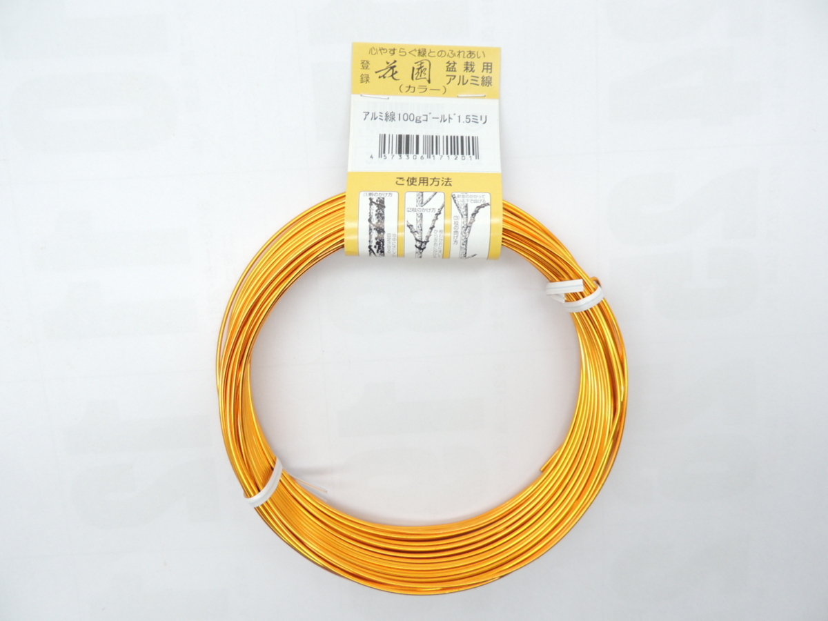 | アルミ線 アルミ針金 ゴールド 太さ1.5ミリ×長さ約20.9m 100グラム 1巻 | |