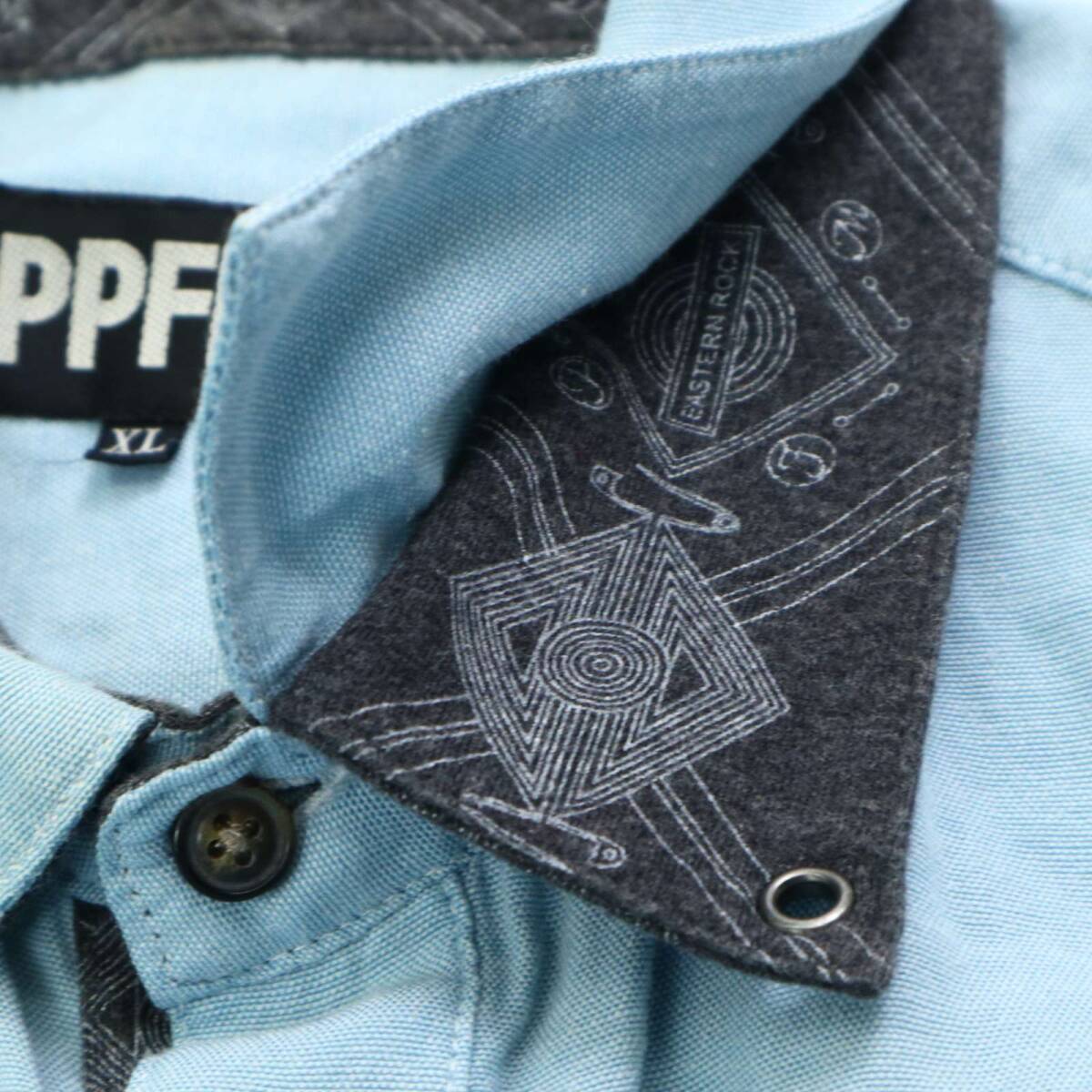 PPFM ペイトンプレイス 春夏 ダメージ加工★ 刺繍 二重襟 7分袖 ワーク シャツ Sz.XL メンズ