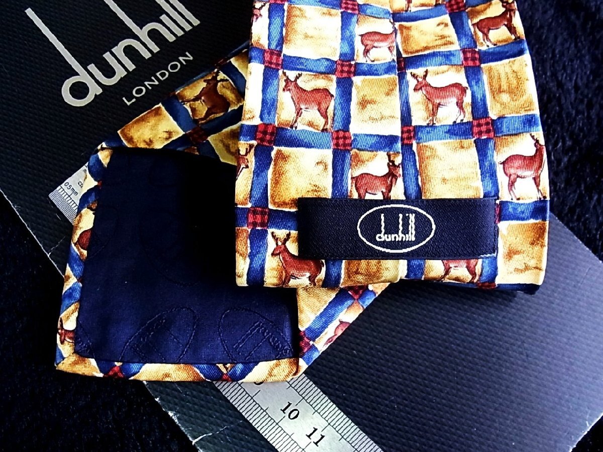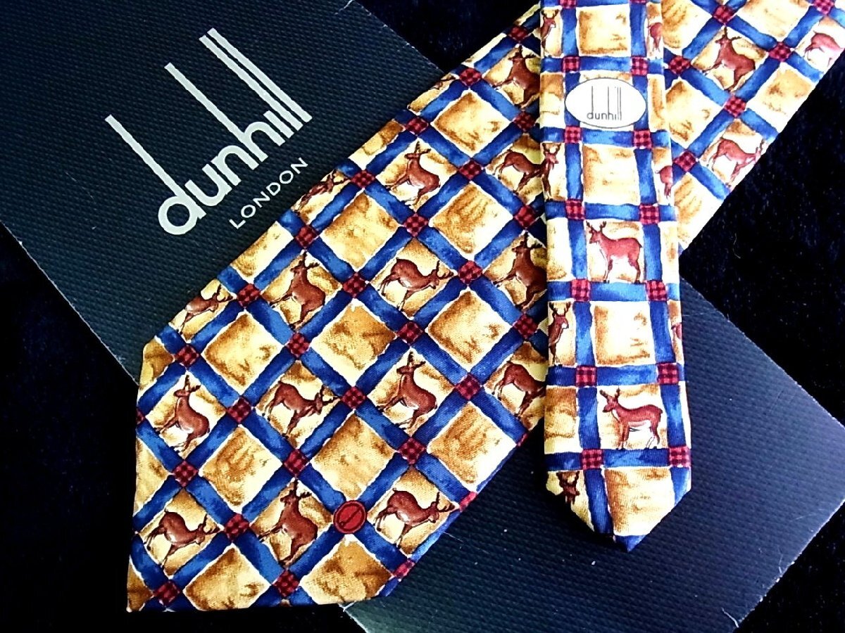 ♪今週の特売980円~♪4036♪良品【dunhill】ダンヒル【鹿 シカ 動物 dロゴ 柄】ネクタイ♪