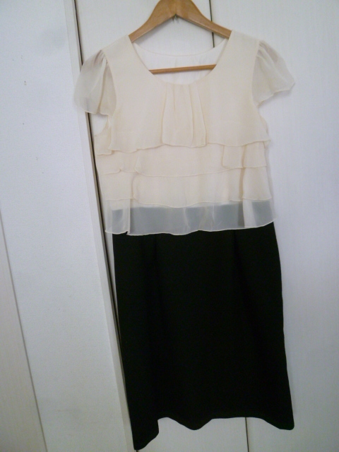 Lavannor◇アイボリー×黒異素材ドッキングワンピースM/ブラックフォーマル結婚式パーティー入学式入園式卒業式卒園式膝丈◇OP730