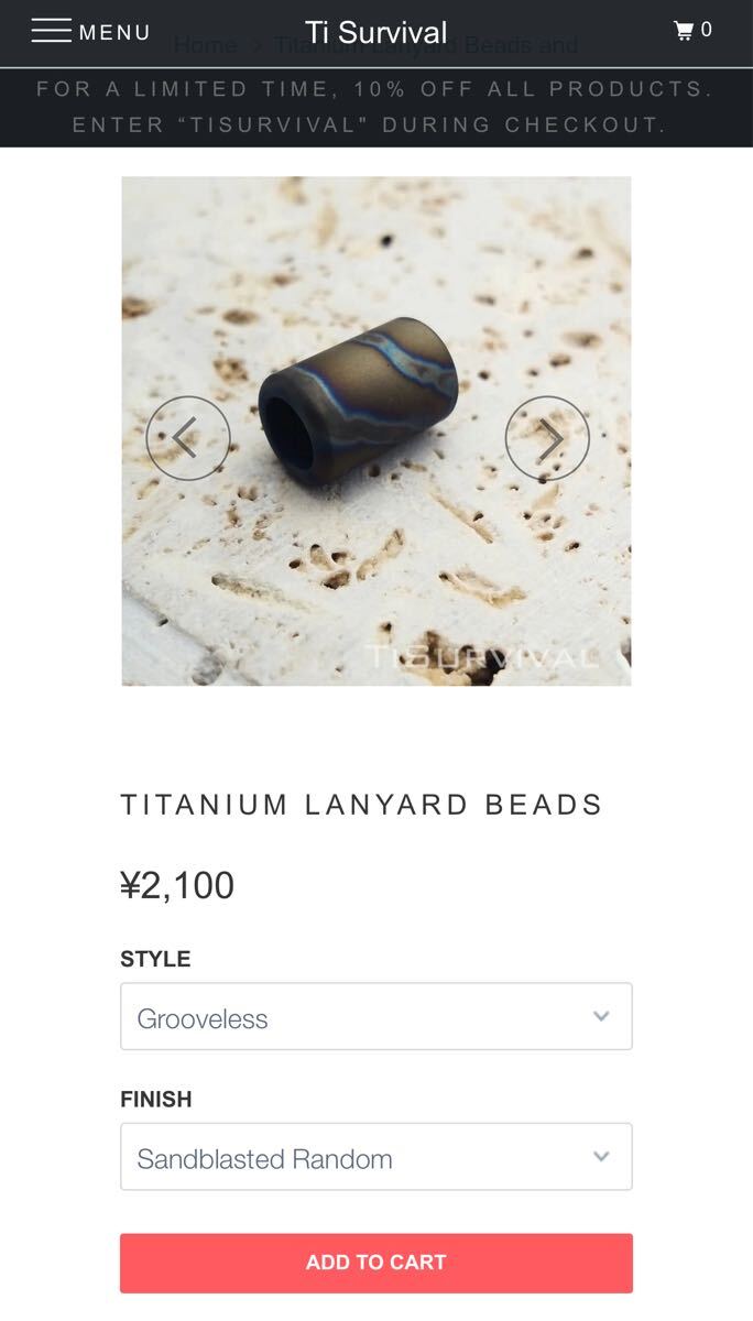 チタニウムビーズは写真のti-survivalというアメリカのメーカーのものを個人輸入して使用しています。一つ2100円で全ジッパーの6つをカスタムしており、送料・関税を入れるともっとかかるのでビーズだけでもお買い得かと思います。