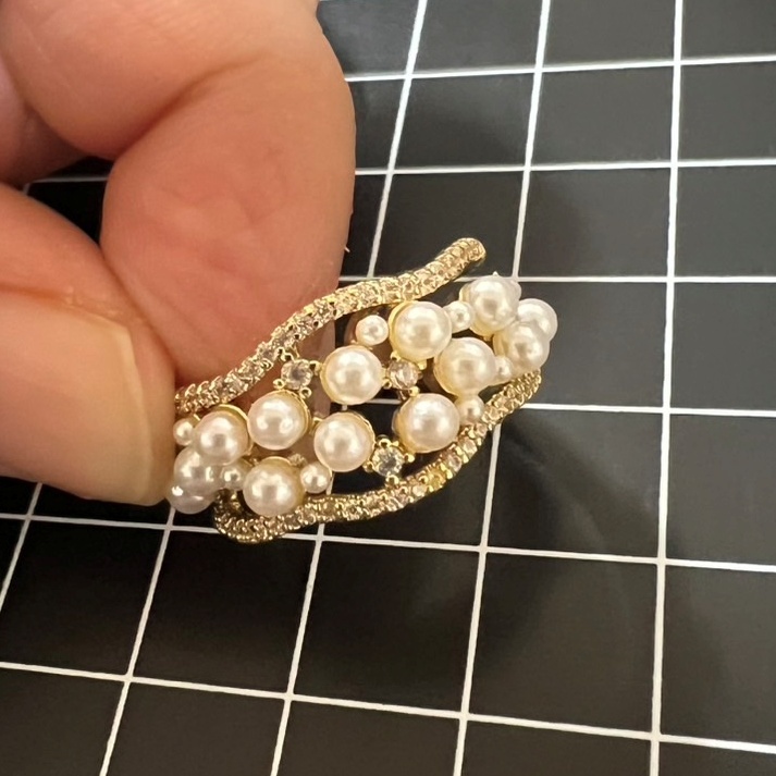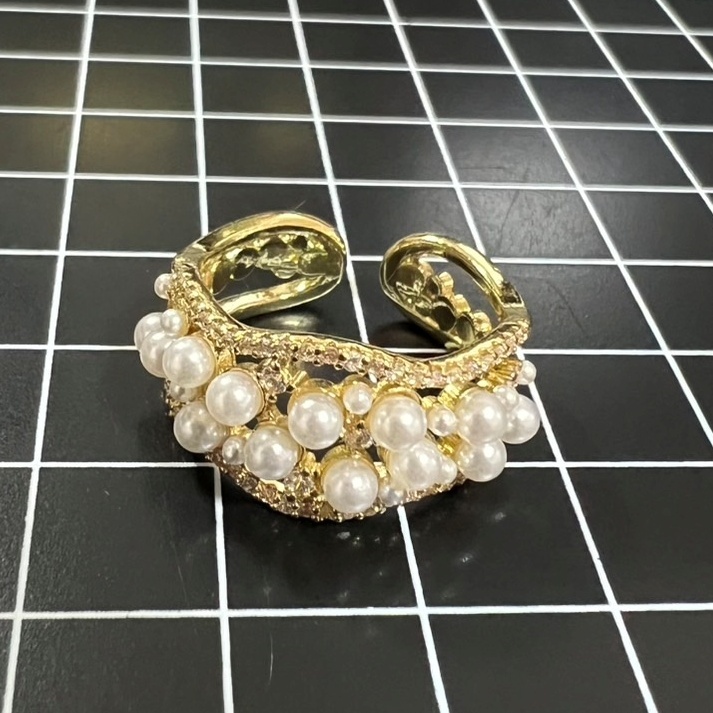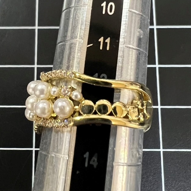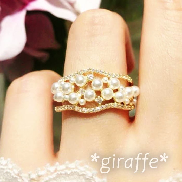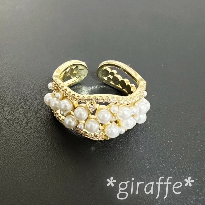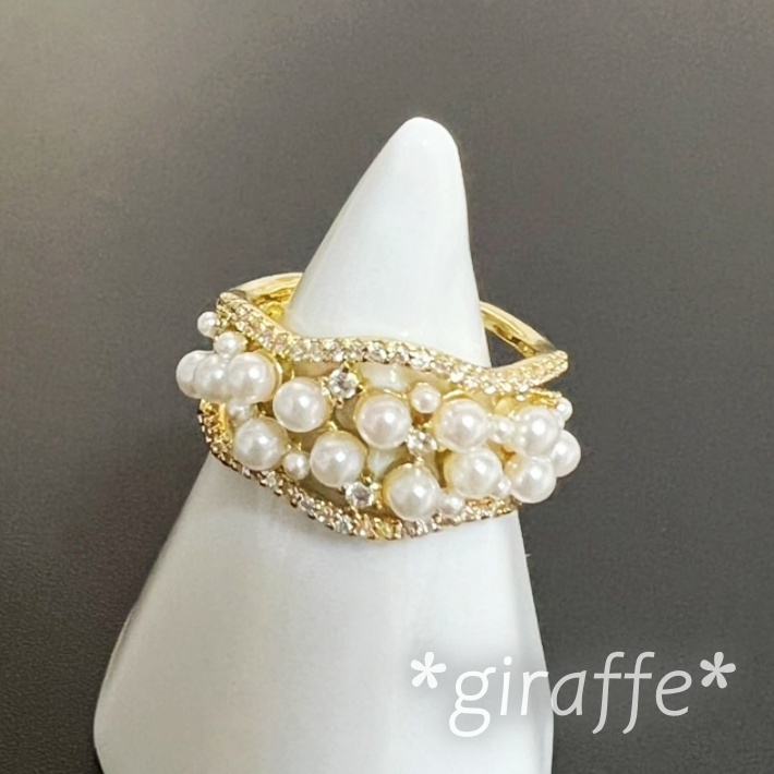 A836 匿名配送 指輪 レディース リング パール ジルコニア ゴールド フリーサイズ 太い サイズ調節可能 フォーマル