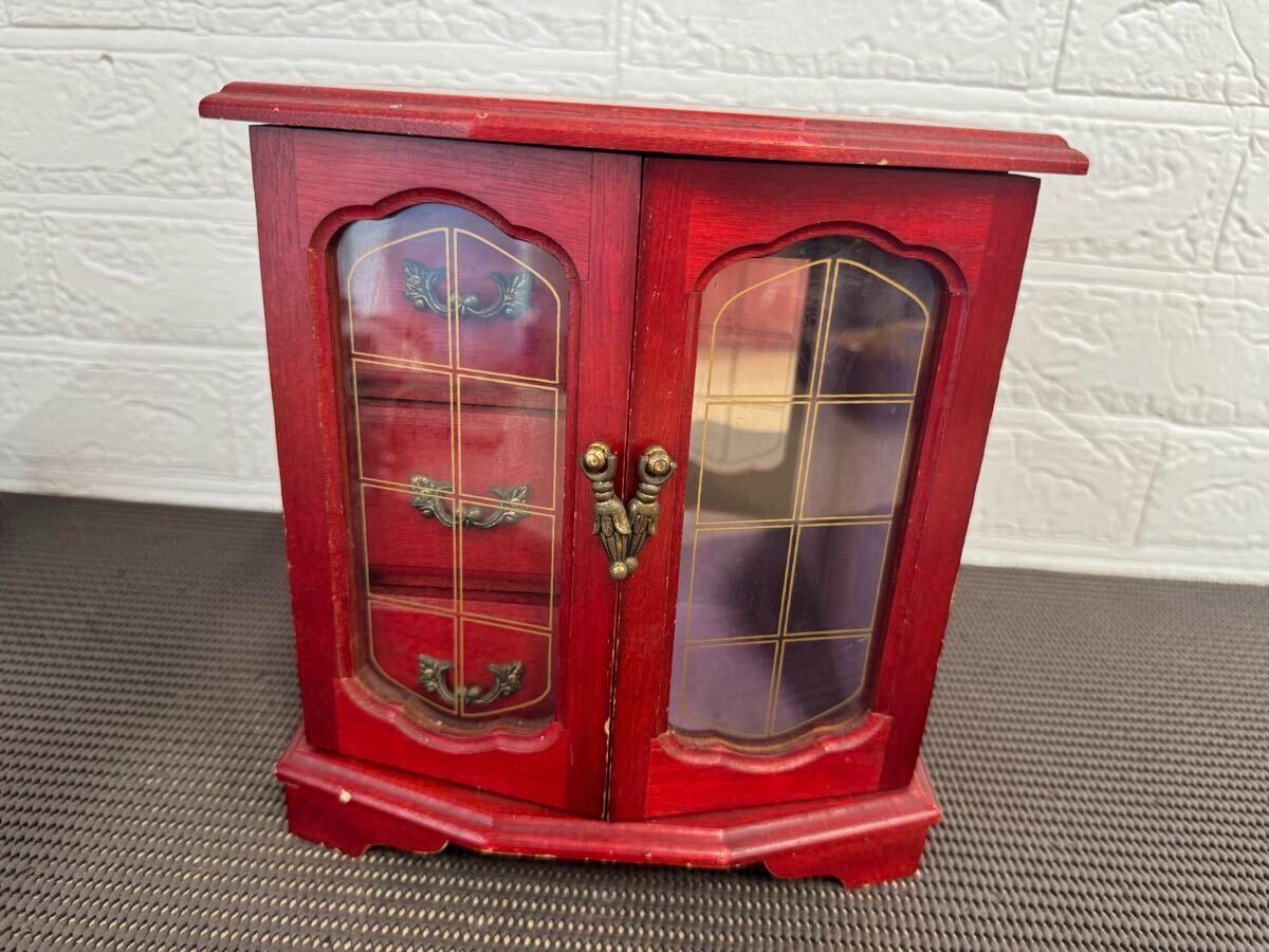 飾り棚 オルゴール 木製 宝石箱 ジュエリーボックス アクセサリーケース  レトロ ジャンク品 D-626