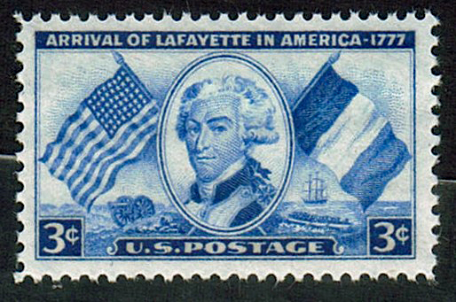 極美品の切手 【アメリカ】1952.6.23発行「ラファイエット将軍來米175周年」3c 1種完 単片   未使用 NH 糊有