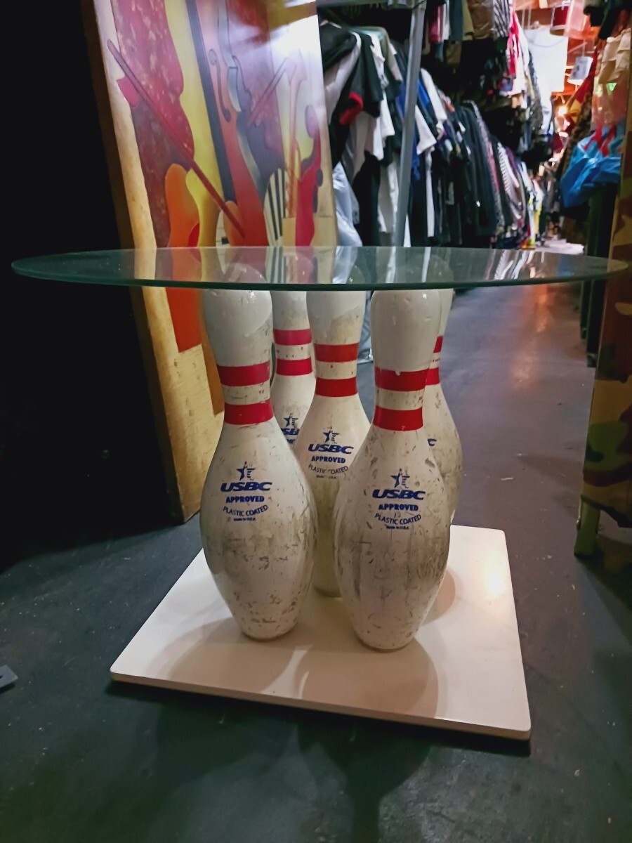 ロングビーチにて購入したモノで古いボウリングピンを土台にした作りがユニークな一品です