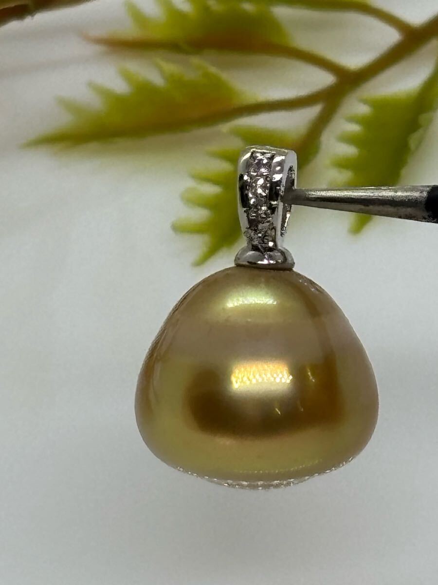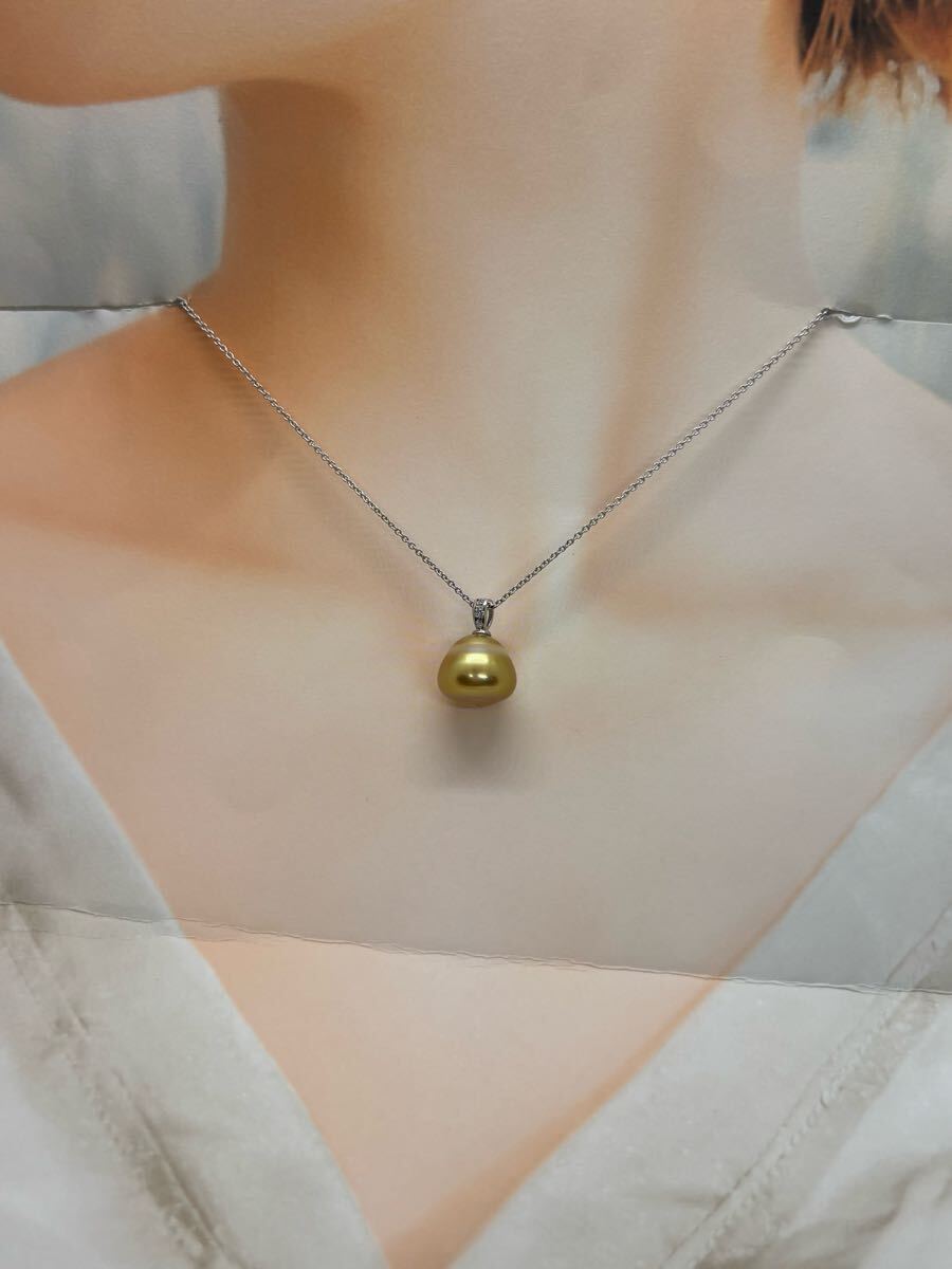 白蝶パール 南洋白蝶真珠 ゴールデン可愛い ペンダントネックレス 新品