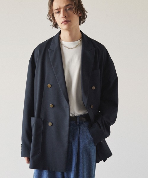 参考商品名:TR綾ストレッチ オーバーサイズピークドラペル金ボタンダブルジャケット/ブレザー EMMA CLOTHES