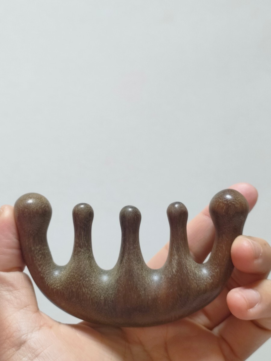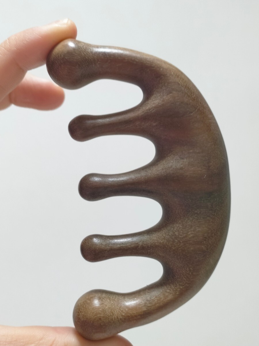 天然白檀素材を使用した手作りのコームです。 表面は手作業で磨かれ、滑らかで丸みがあり、手触りが快適です。 首や頭など様々な部分をマッサージできます。