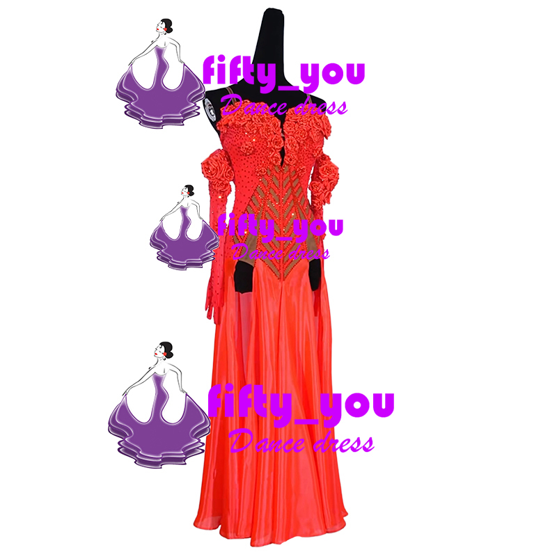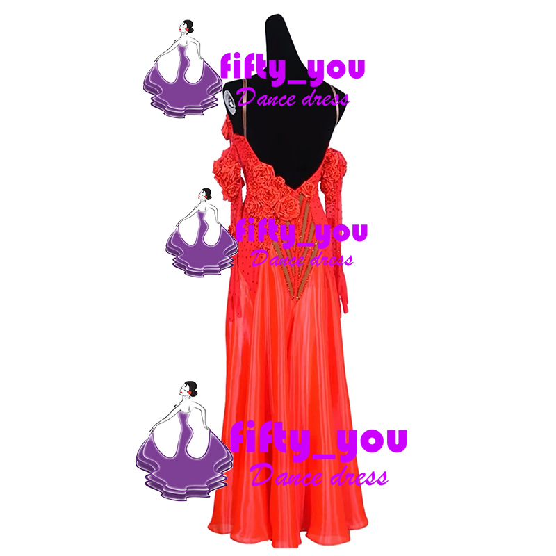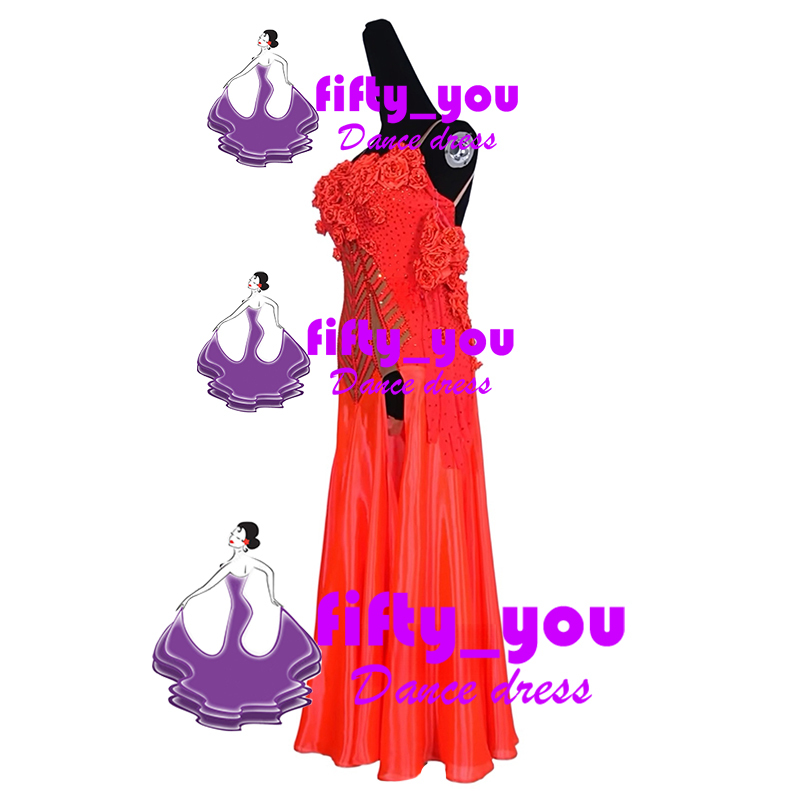 新品fifty_youセミオーダードレス レディース社交ダンス競技衣装 ラテン・ルンバ用ロングドレス お花飾り可愛い1着 色変更可能