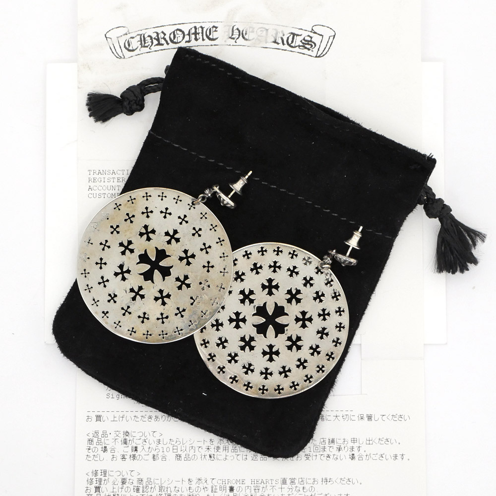 【名東】クロムハーツ ピアス 一対 サークル CHプラス SV925 シルバー ジュエリー