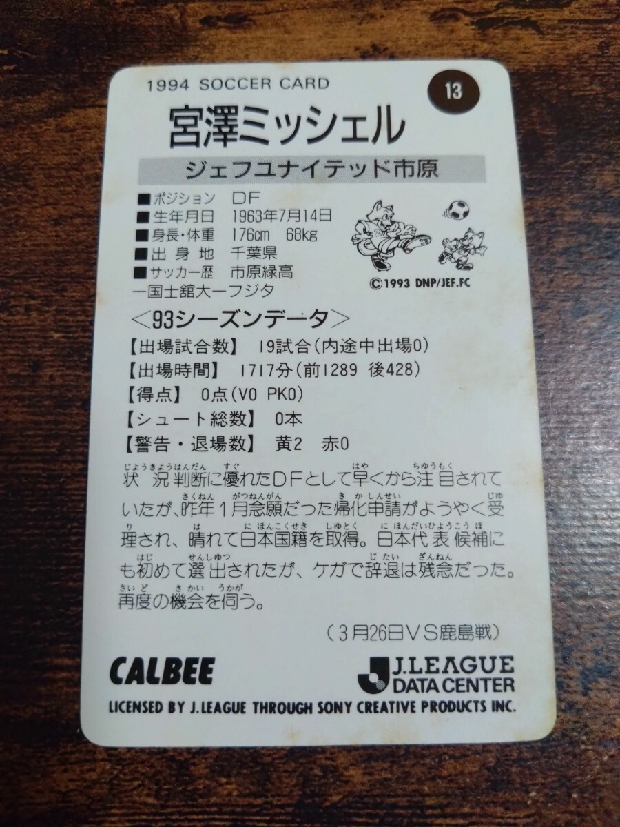 カルビー Jリーグチップス カード 1994 No.13 宮澤ミッシェル ジェフユナイテッド市原