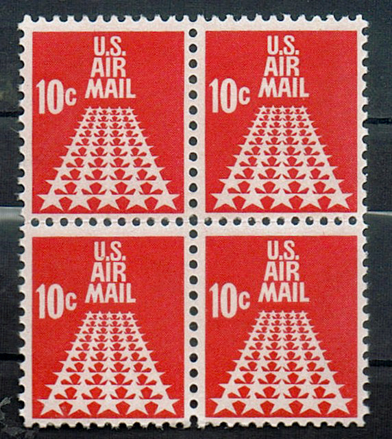 極美品の切手 【アメリカ】1968.1.5発行「航空・米国国内用」10c 1種完 田型  未使用 NH  糊有