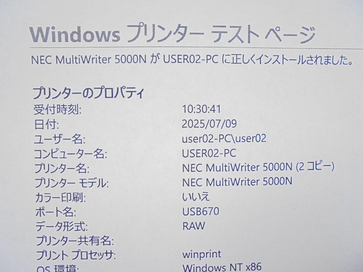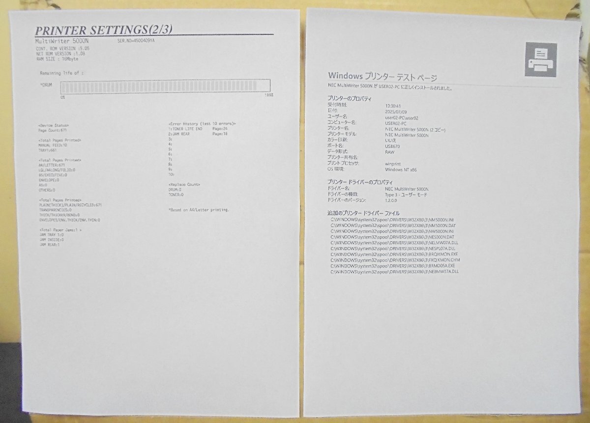 用紙トレイ、手差しトレイ(スロット)印刷動作確認済み。 連続印刷動作確認済み。 手動両面印刷動作確認済み。 USB、LAN動作確認済み。 |
