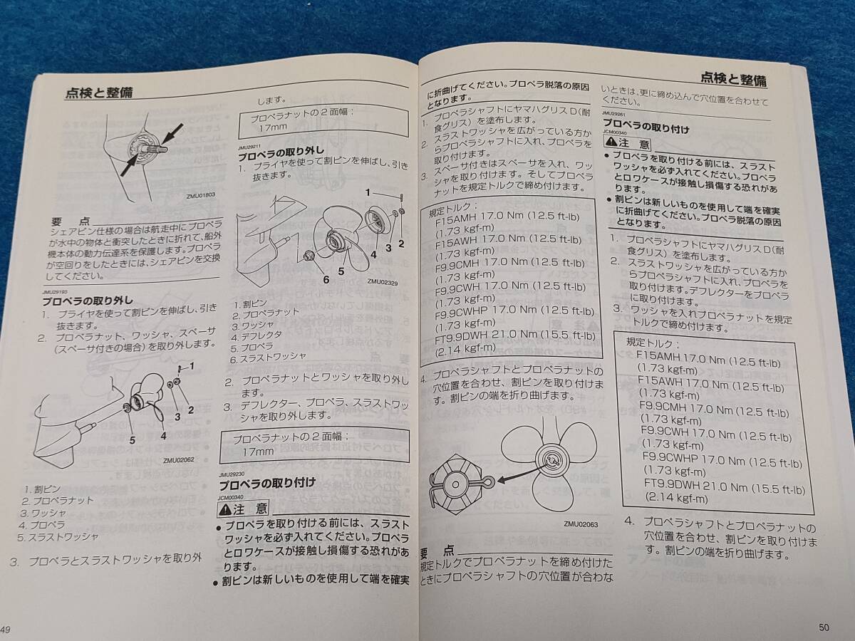 YAMAHA ヤマハ4サイクル船外機 F9,9C/FT9,9D/F15A 取扱説明書 中古きれい