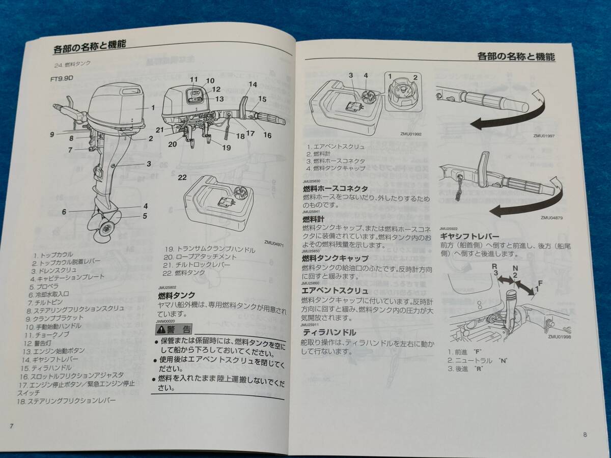 商品  YAMAHA ヤマハ 4サイクル船外機 F9,9C/FT9,9D/F15A 取扱説明書
