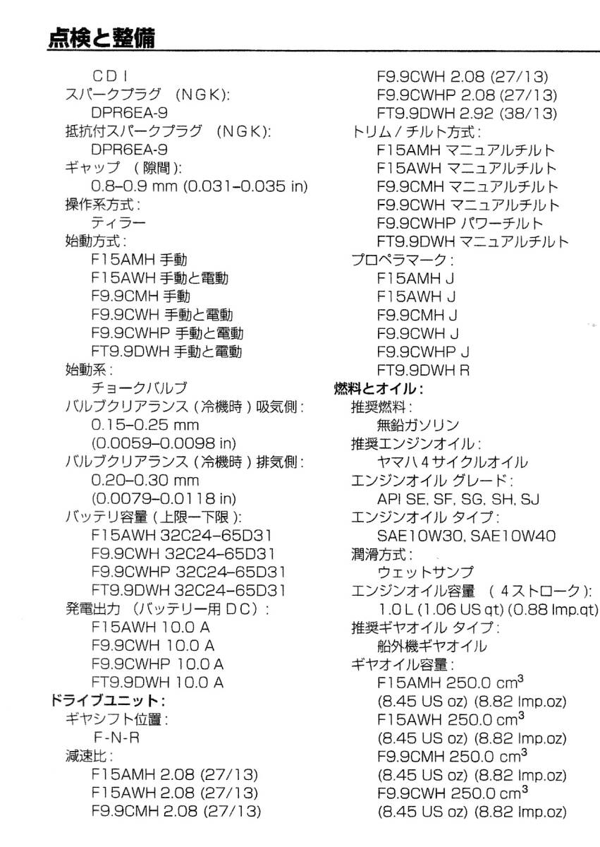明細  ヤマハ 4サイクル船外機 F9,9C/FT9,9D/F15A 取扱説明書