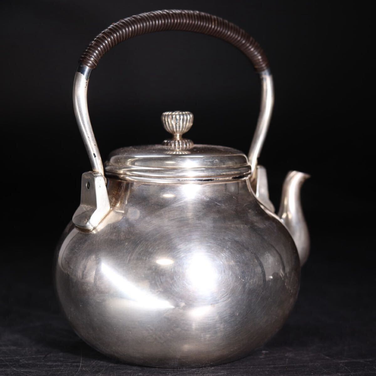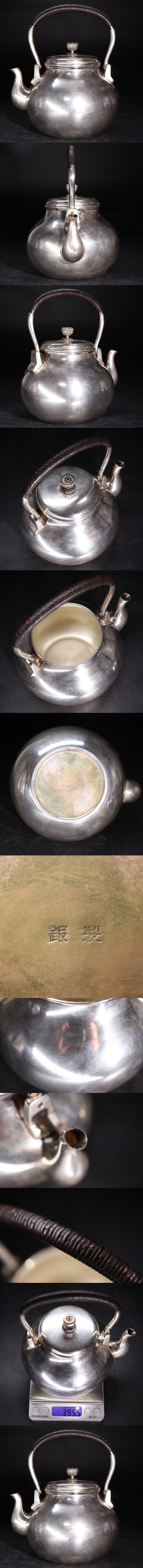 | 銀製 印刻 急須 重量約395.5g / 銀 彫金 金工 茶器 煎茶道具 煎茶飾 .G2034 |