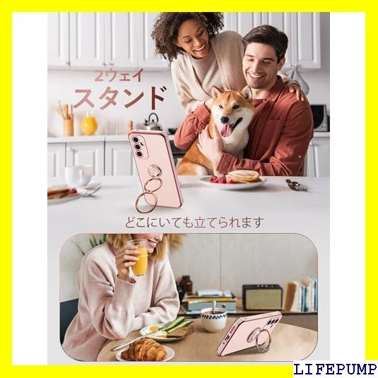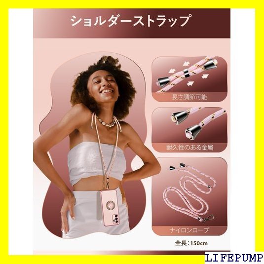Rockaway Galaxy A55 5G 用 ケース ダブルリング付き ショルダー ストラップ付き SC-53E SCG27 ケース 耐衝撃 薄型 軽量 紐付き 肩掛け 斜めかけ かわいい 女の子 おしゃれ スマホケース ギャラクシーA55 カバー - ピンク 1689