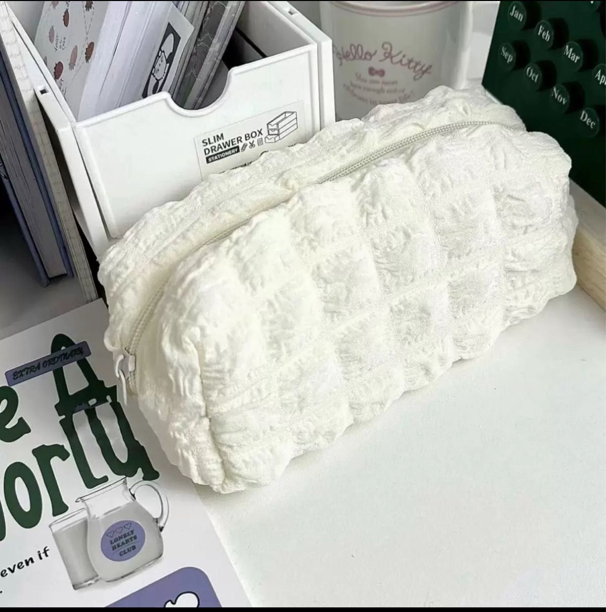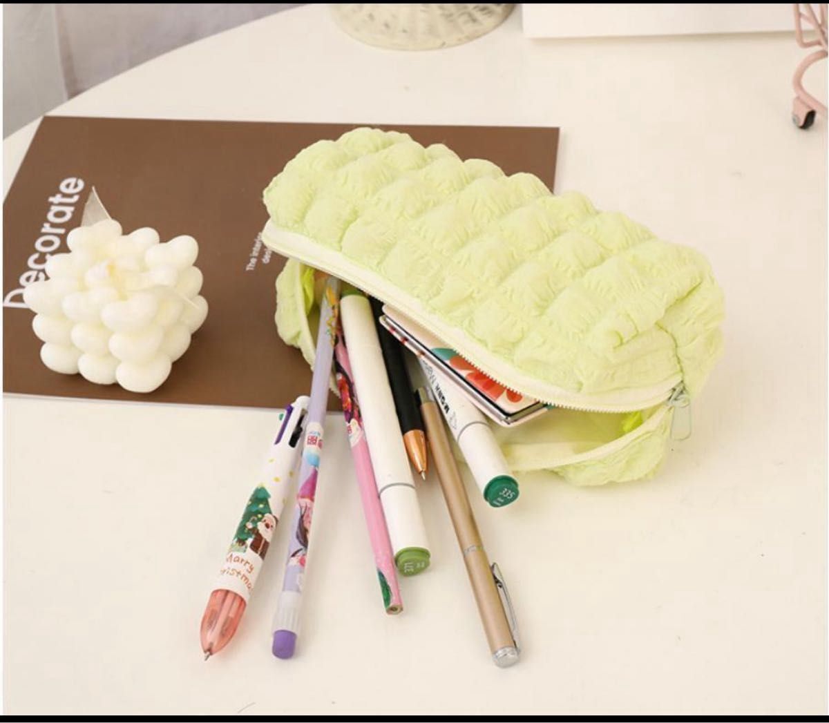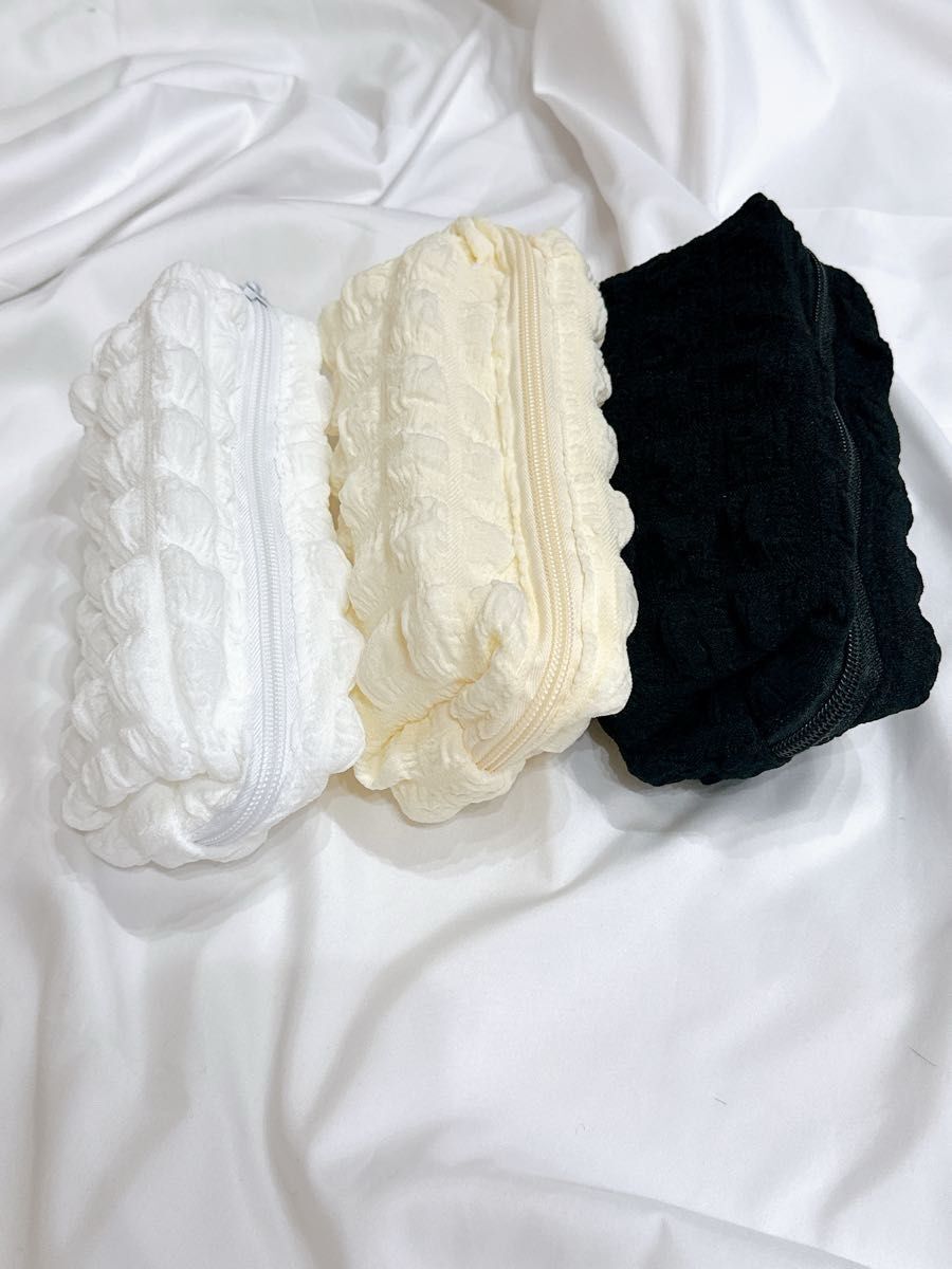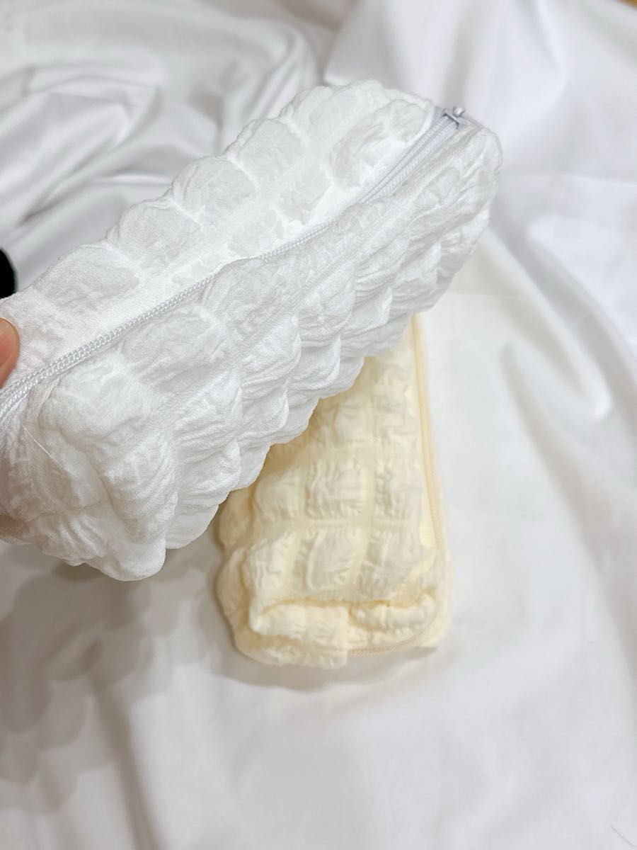 トレンドのポップコーン生地をベースにしたポーチになります^^