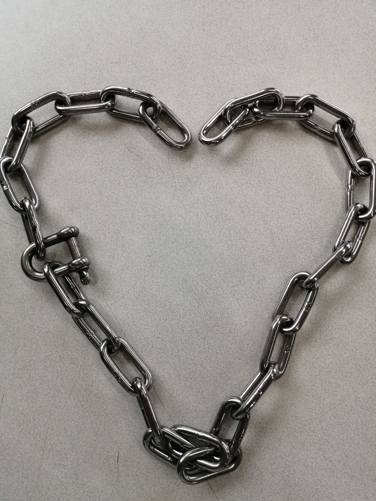 中古ステンレスチェーン約50cmと約20cmのチェーンをシャックルで繋いでます。写真にてご確認ください。