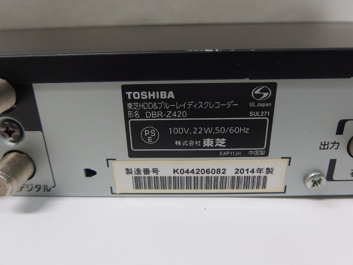10▲/Zク5265 保証有 ☆TOSHIBA DBR-Z420 HDD&BDレコーダー W録画 2TBに換装済 新品互換リモコン 2014年製 中古