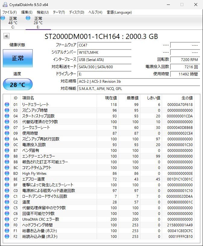 ★ハードディスクはCrystalDiskInfoにて正常に動作することを確認しています。