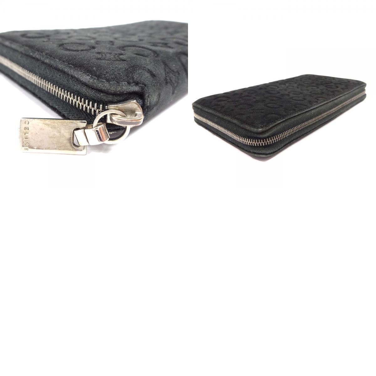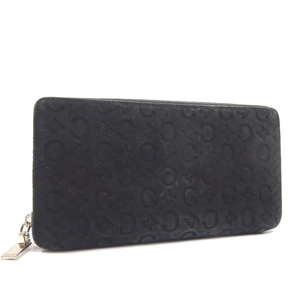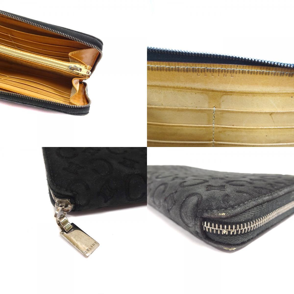 セリーヌ マカダム ラウンドファスナー スエード 長財布 ユニセックス レザー ブラック 中古 CELINE