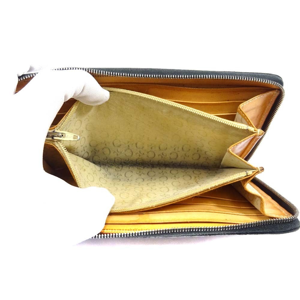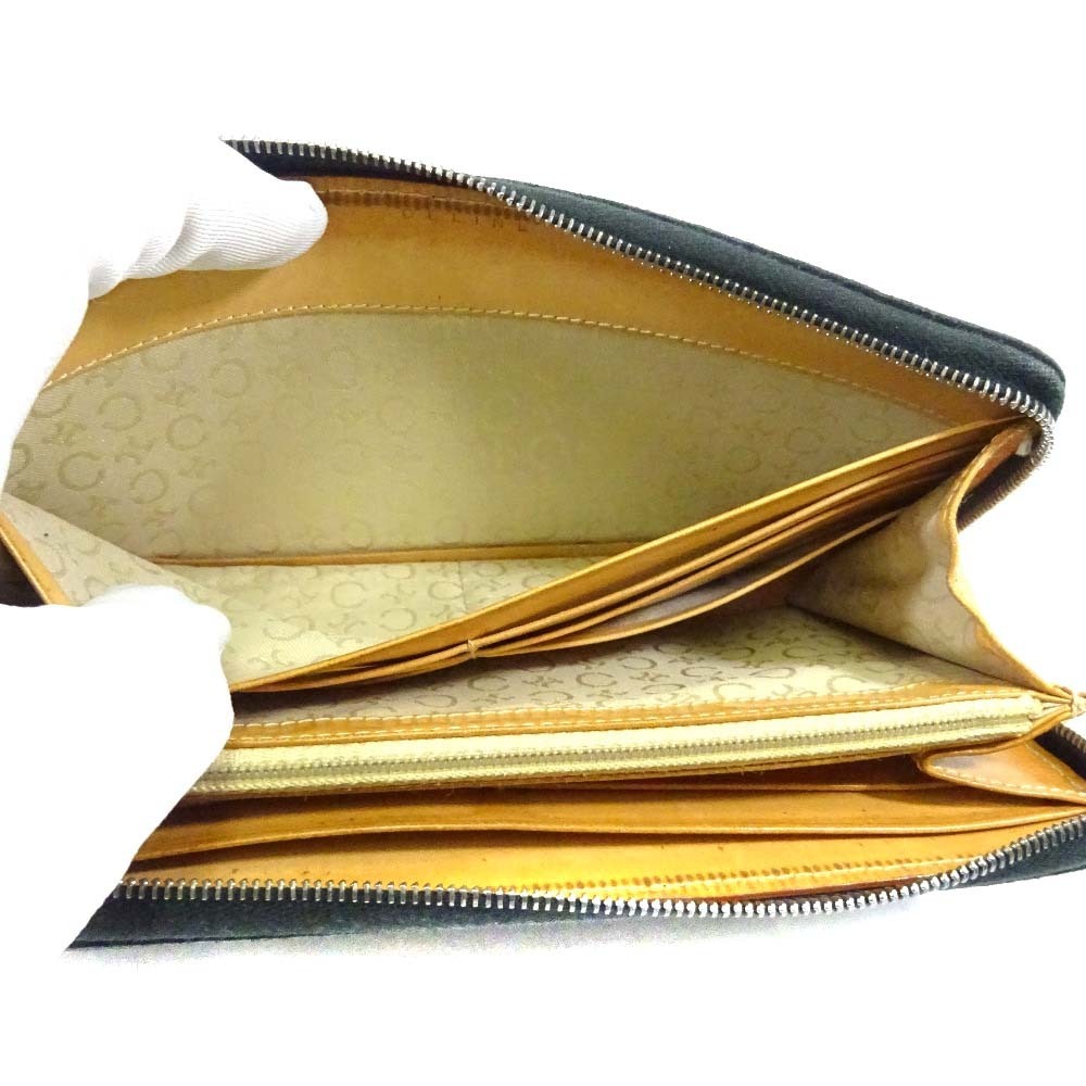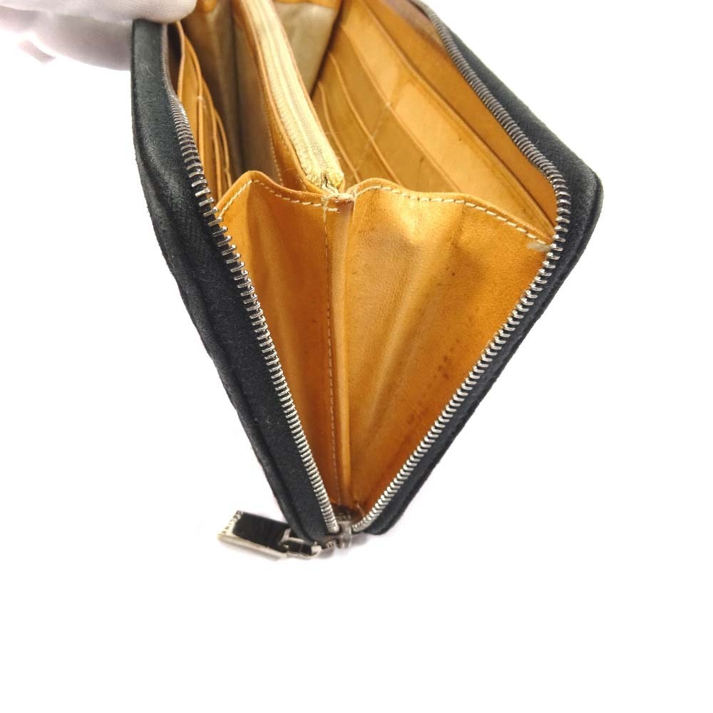 セリーヌ マカダム ラウンドファスナー スエード 長財布 ユニセックス レザー ブラック 中古 CELINE