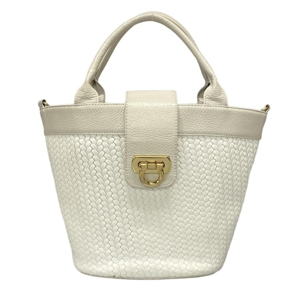 デンハマノ 傳濱野 トートバッグ - レザー 白 型押し加工 バッグ