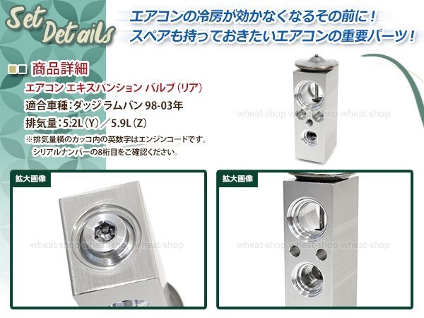 A/C エアコン エキスパンション バルブ エキパン ダッジ ラムバン 94-03 B150 B250 B350 リア 5.2L(Y)/5.9L(Z)