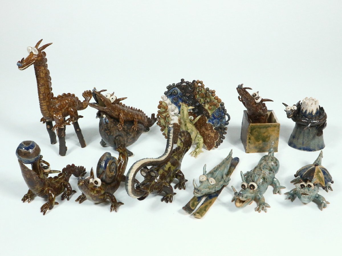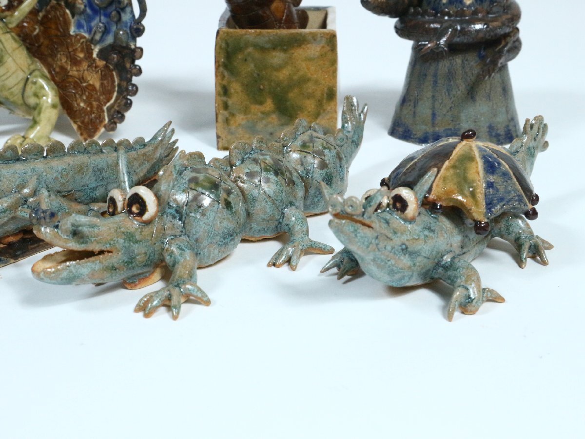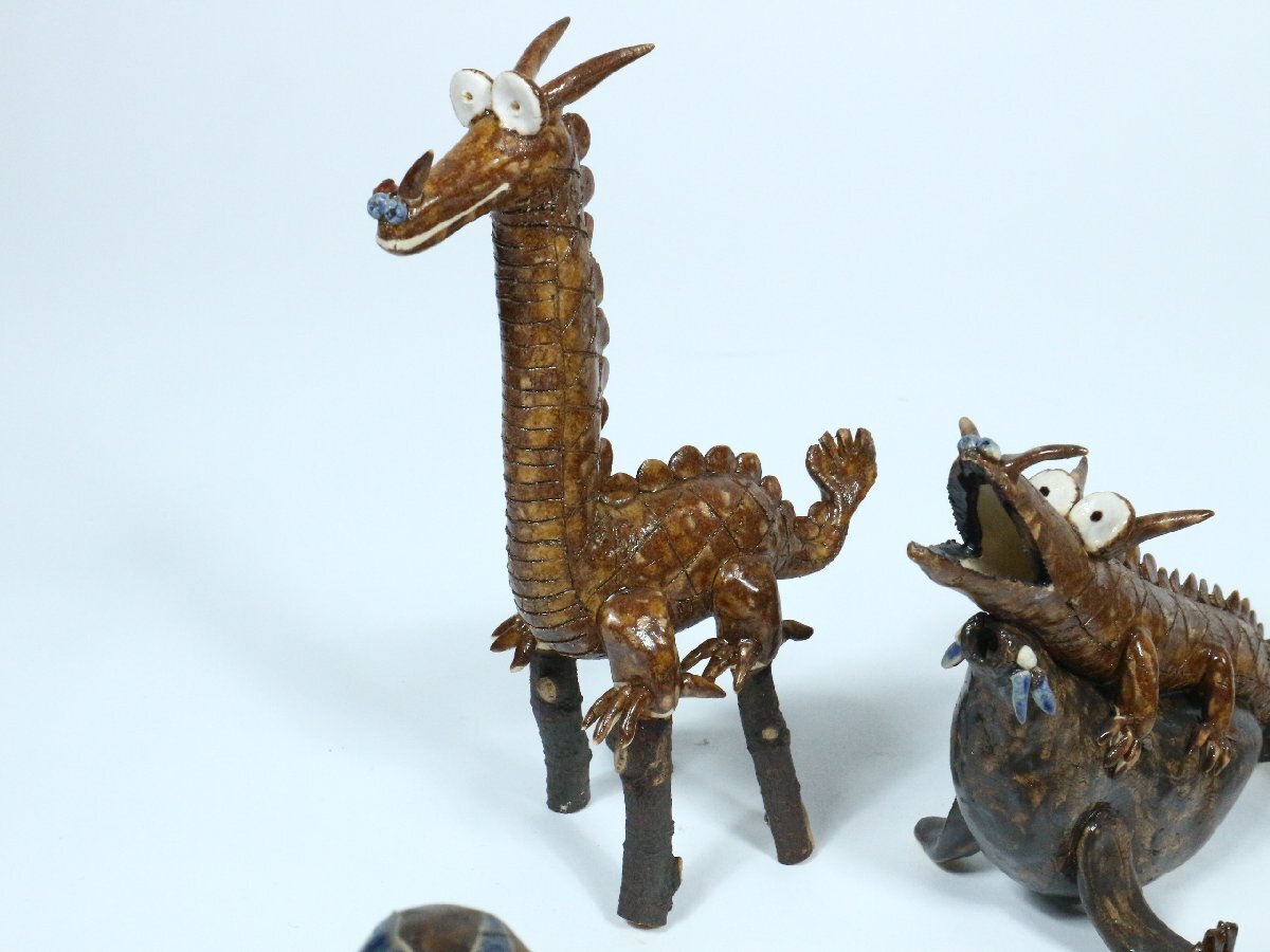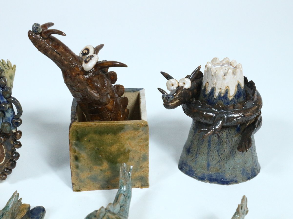 品名】 陶人形 龍 まとめて 郷土玩具 民芸 伝統工芸 風俗人形 置物 【状態】 経年による多少のキズやヨゴレ、イタミがございます。 割れ、欠けがございます。 時代や産地、作者の記載がある商品に関しては当店での判断によるものですので、保証はいたしかねます。あくまで参考程度とお考えいただ き、画像による判断をお願い致します。 上記を含む商品の状態や詳細(材質等)を写真にてご確認いただき、納得された上での入札をお待ちしております。 【大きさ】 高さ:約4-17cm (採寸につきましては多少の誤差があるかと思いますので、予めご了承ください。) |