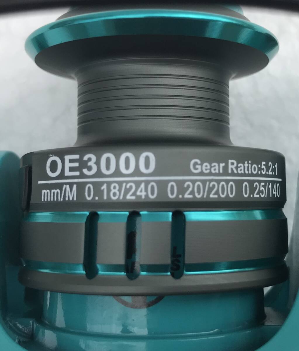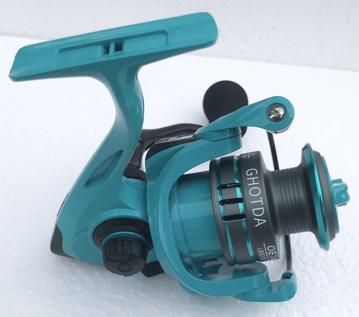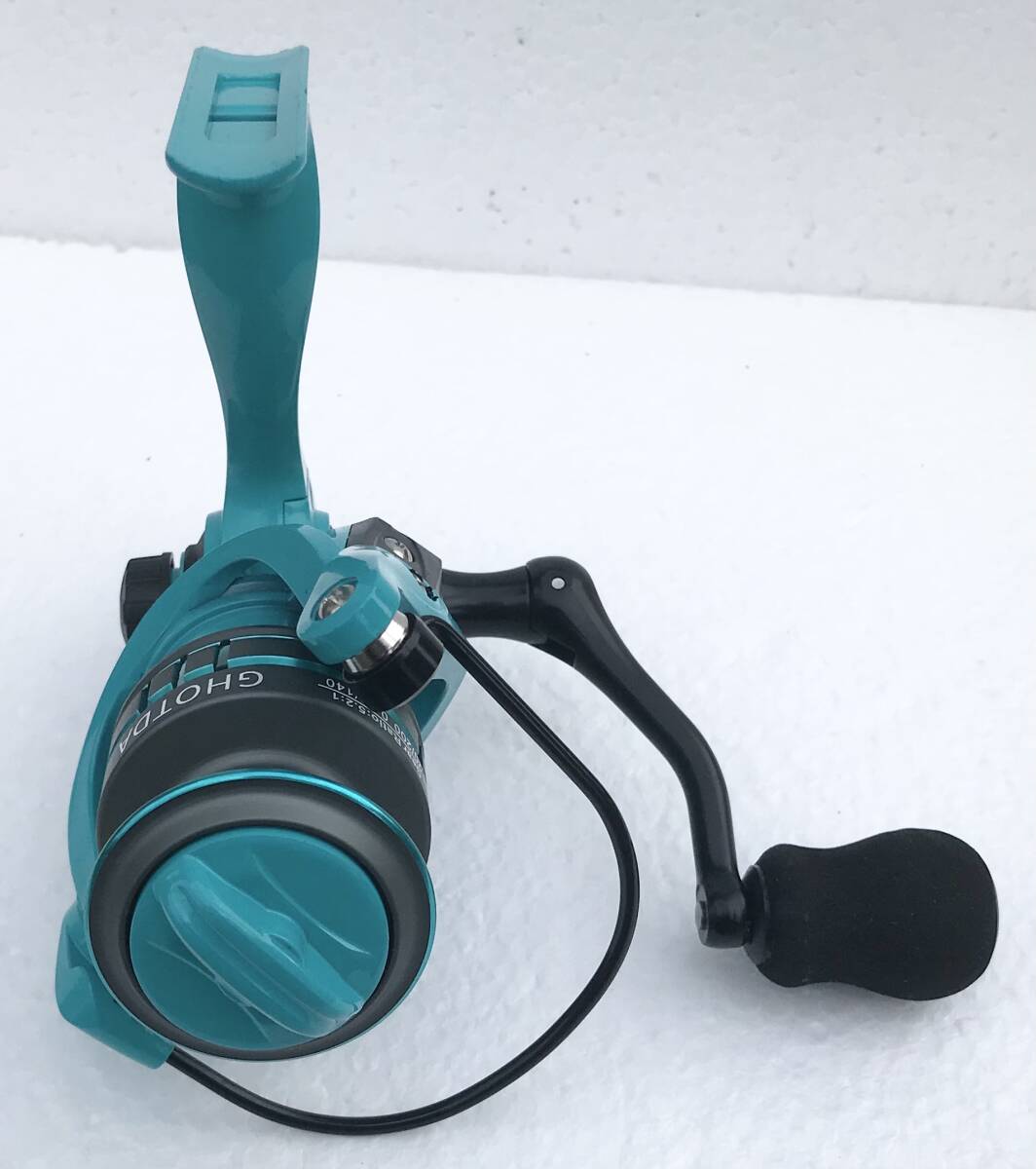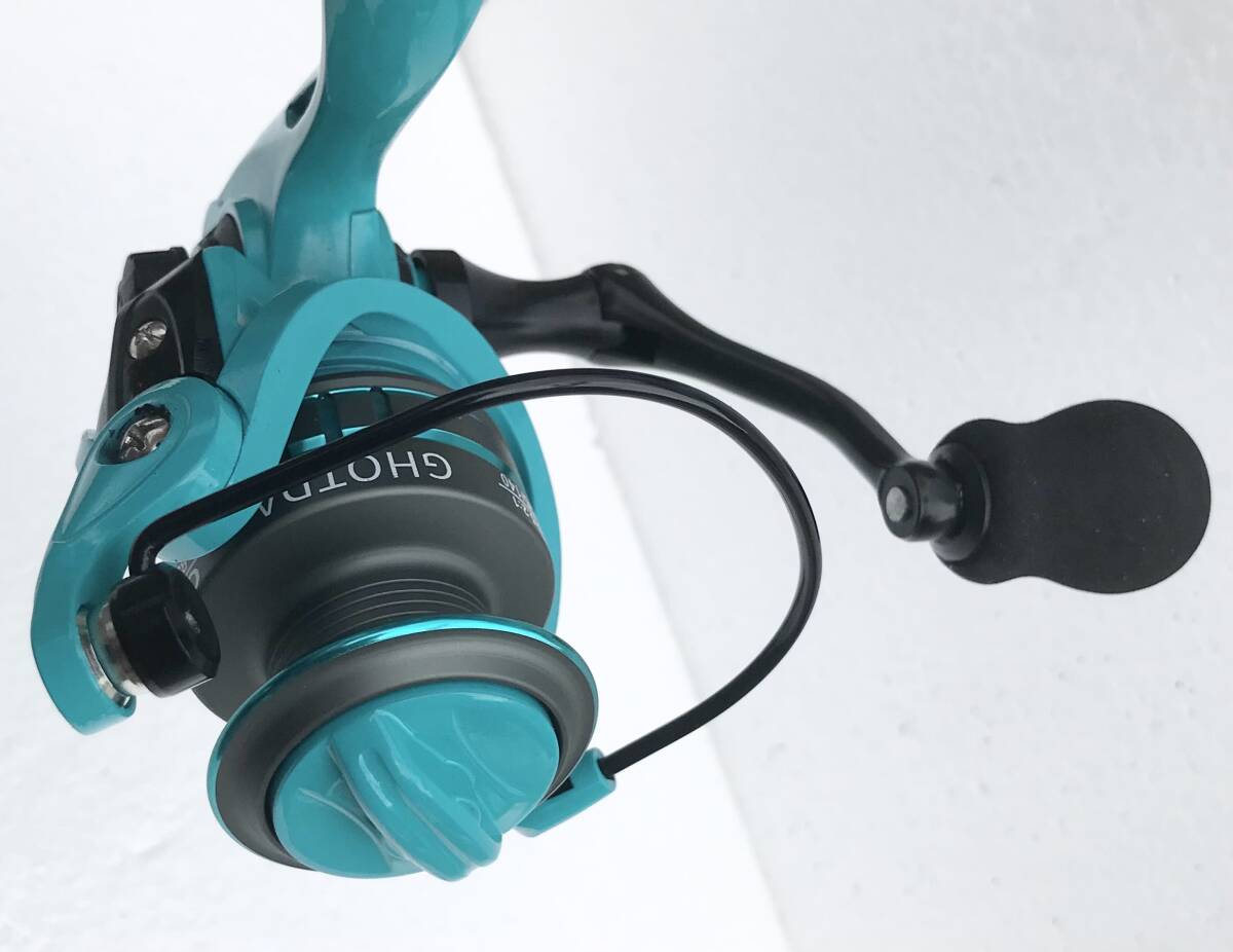写真のGHOTDAスピニングリール ターコイズブルーOE3000(新品未使用)を発送します(送料無料)。