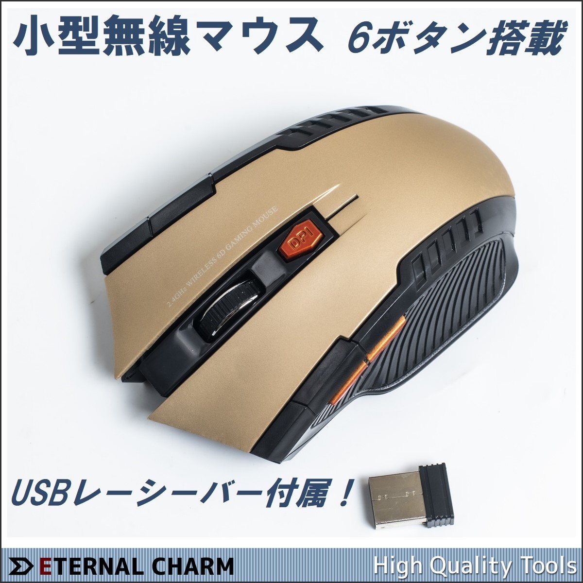 【定形外送料無料】USBレシーバー付 無線マウス 光学式 パワーゲイザー ワイヤレス 6ボタン★ブラウザ進む戻るボタン搭載 ゴルドー色