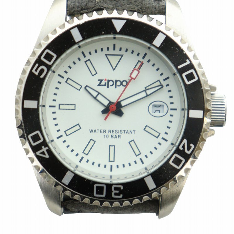 ジッポー ZIPPO ZPW003 腕時計 ウォッチ クォーツ 回転ベゼル デイト カレンダー付き 白文字盤 シルバー色 ■GY18 /MQ メンズ