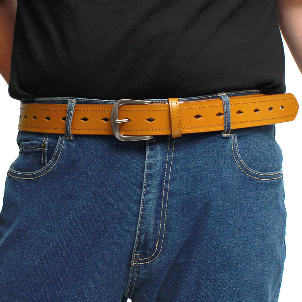 商品名 | 【新品】 F ブラウン EDWIN(エドウィン) レザー ベルト 大きいサイズ メンズ バックル 本革 ダイヤパンチング レザーベルト |