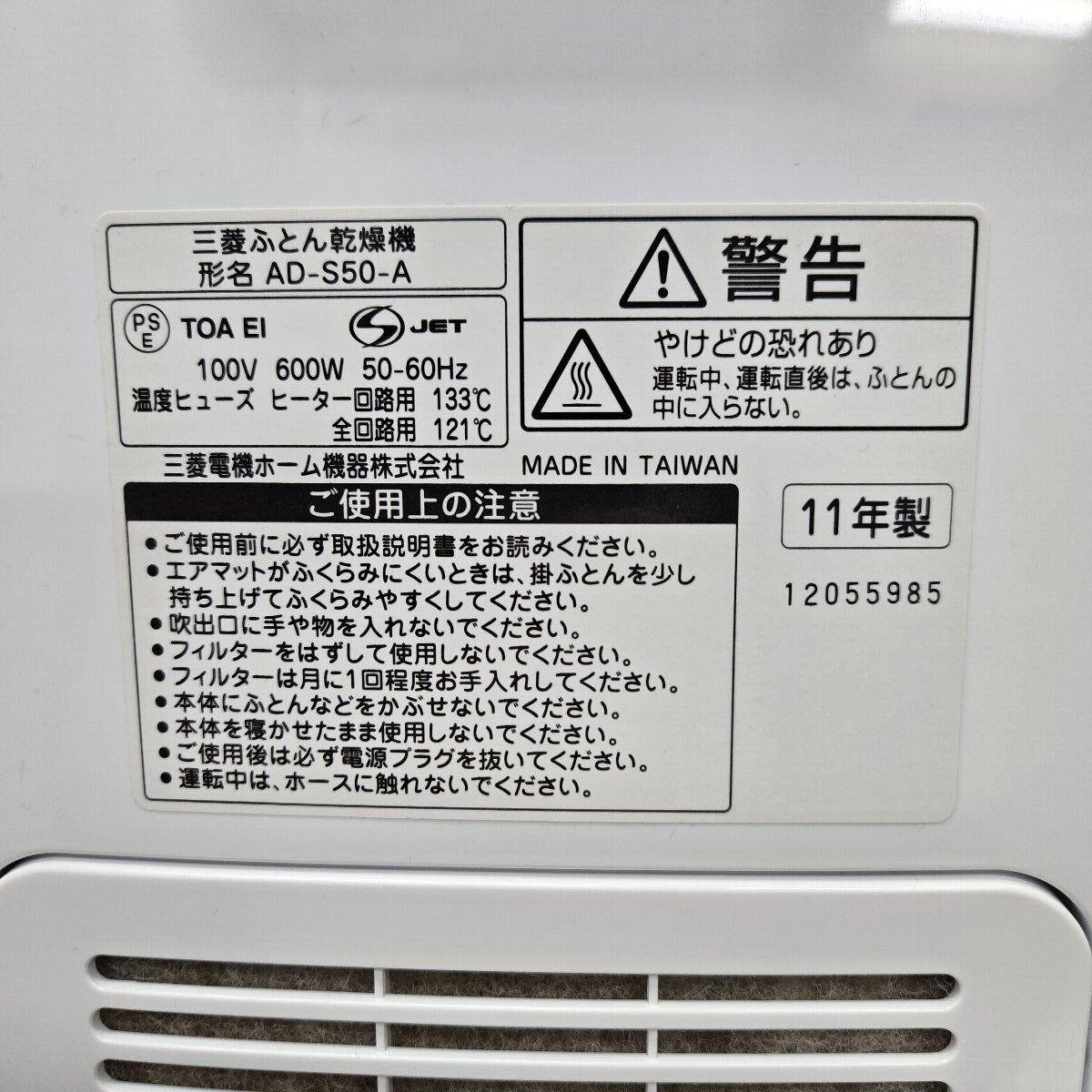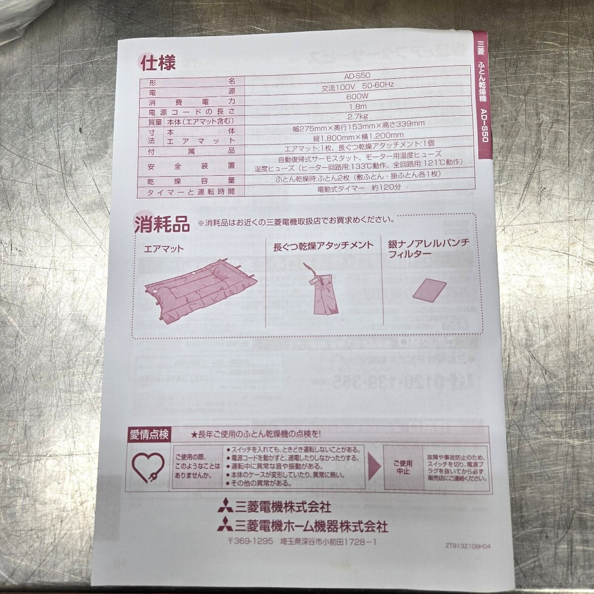 ♪♪5d163-2 MITSUBISHI 三菱 ふとん乾燥機 AD-S50-A ブルー 未使用 保管品♪♪