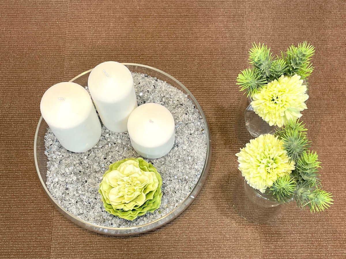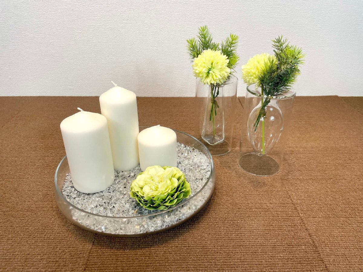 【福岡】インテリア雑貨 フラワーベース & ガラス製 器◆キャンドル◆花瓶:W80 H150◆モデルR展示品◆BR9925_Ts