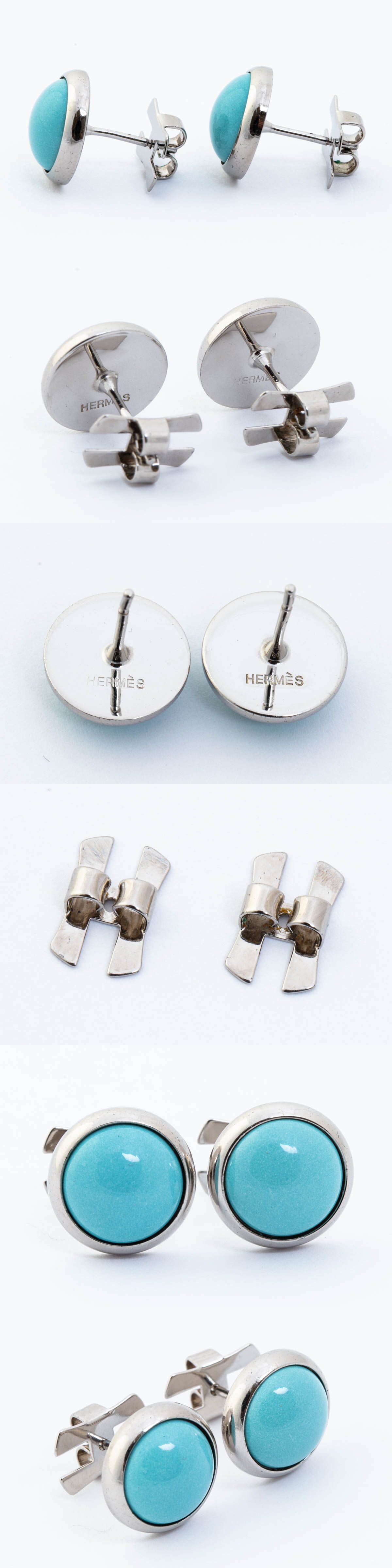 HERMES エルメス ラウンド ピアス エクリプス ライトブルー×シルバーカラー スタッド レディース アクセサリー #28417