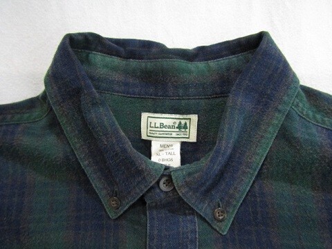 L.L.Bean エルエルビーン チェック フランネル ボタンダウンシャツ グリーン ネイビー XLサイズ【中古】【メンズ】【大きいサイズ】