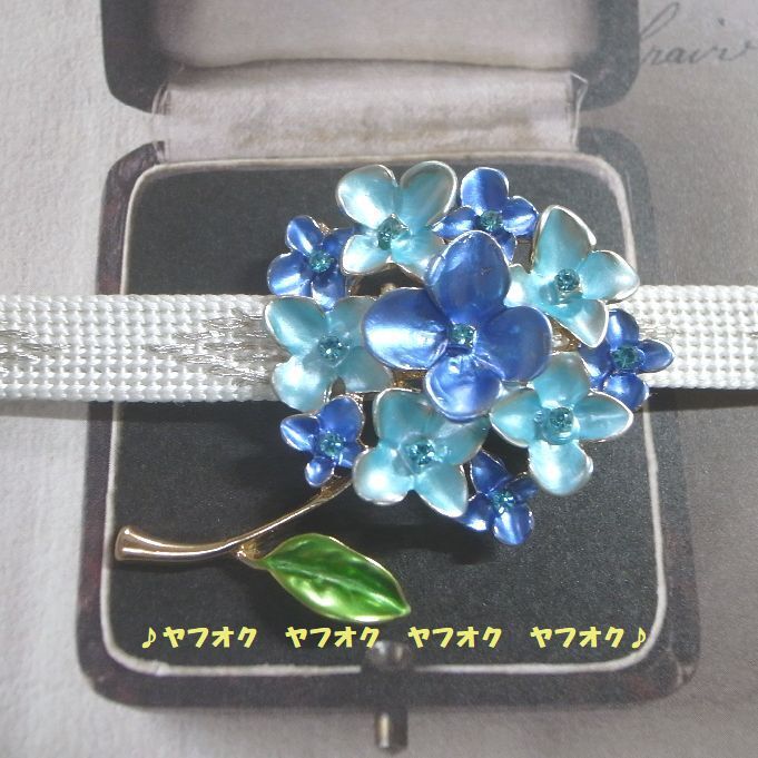 LEAF CLUB ♪ハンドメイド 帯留め 帯留 紫陽花 あじさい アジサイ 花 初夏 夏 梅雨 雨 浴衣 ブルー系/青 ①