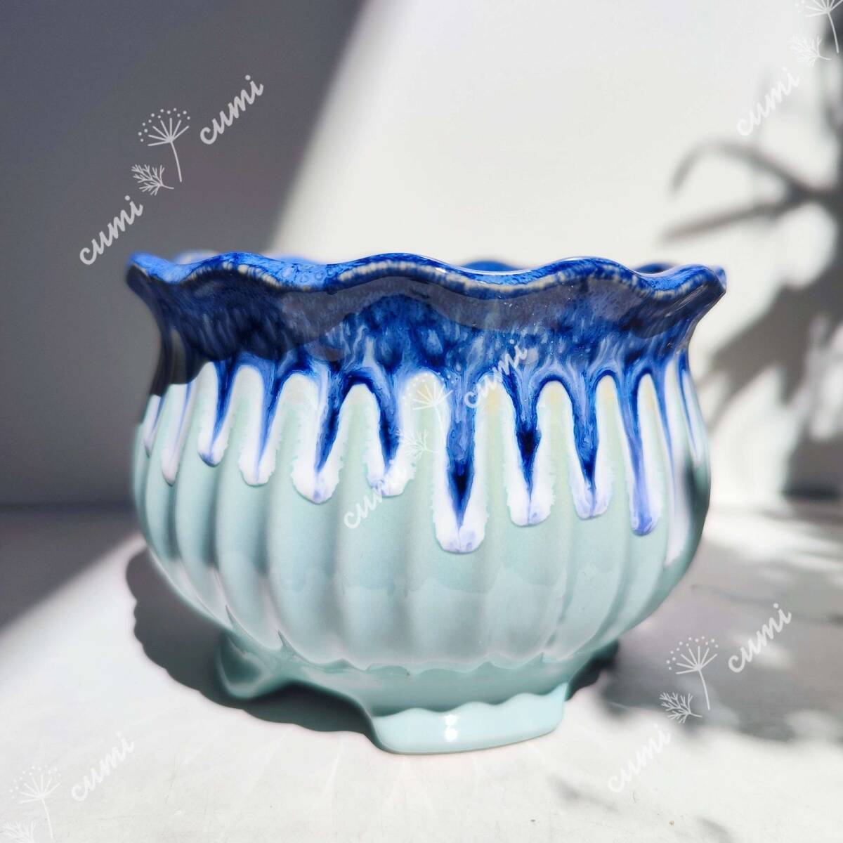 韓国 アイスクリームシリーズ ミント&ブルー 植木鉢 おしゃれ 室内 陶器鉢 多肉 植物 鉢植え 激安 レア インテリア プレゼント