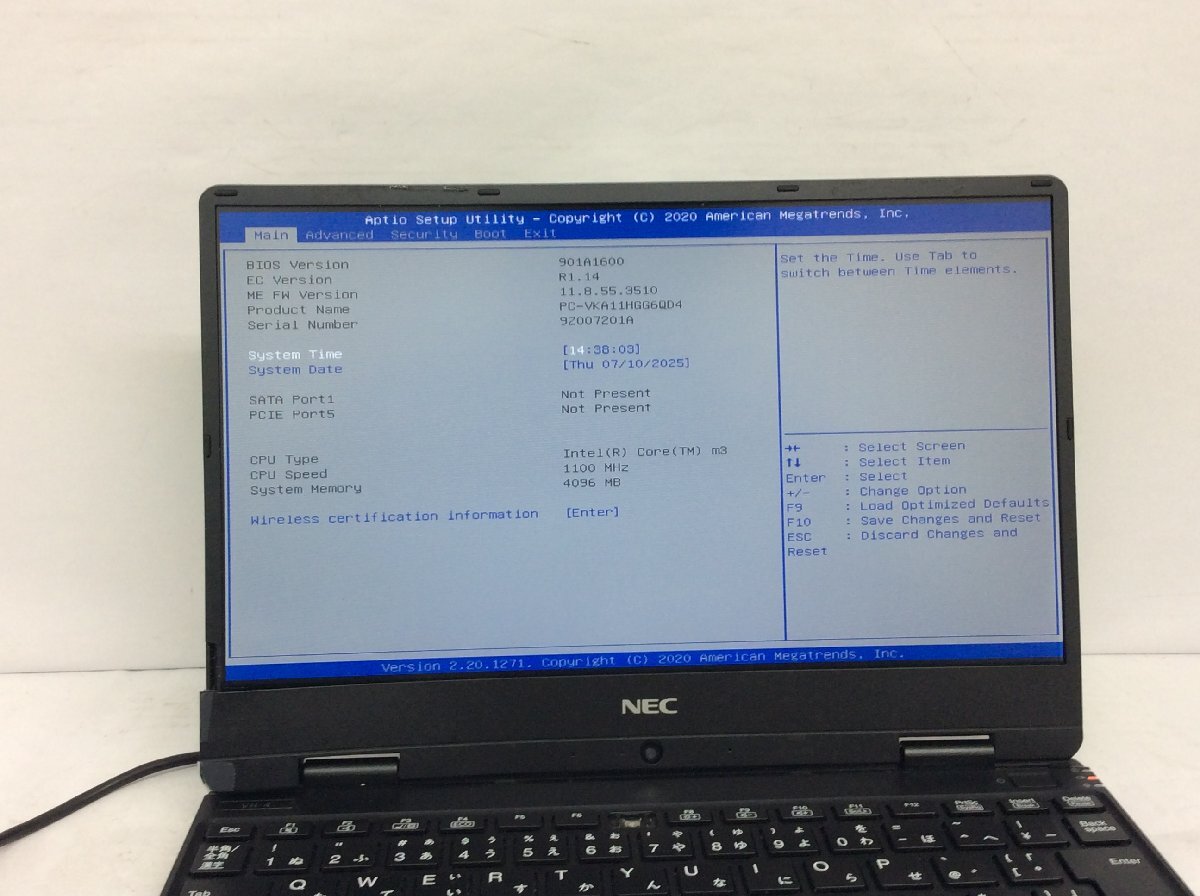 ジャンク/ NEC PC-VKA11HGG6QD4 Intel Core m3-8100Y メモリ4.1GB ストレージ無し 【K17880】