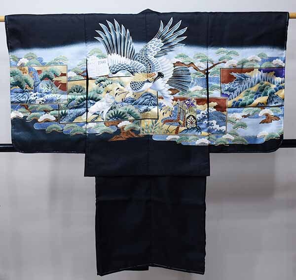 サイズ | ■羽織丈約65cm 裄丈約55cm 袖丈約57cm 着物丈約105cm 適合身長95cm~125cm ※着丈=背中首のゴリゴリ部分から、足くるぶしまでの長さ ※裄丈=腕を斜め45度下げた状態で、背中首ゴリゴリ部分から、肩上を通して、手くるぶしまでの長さ |