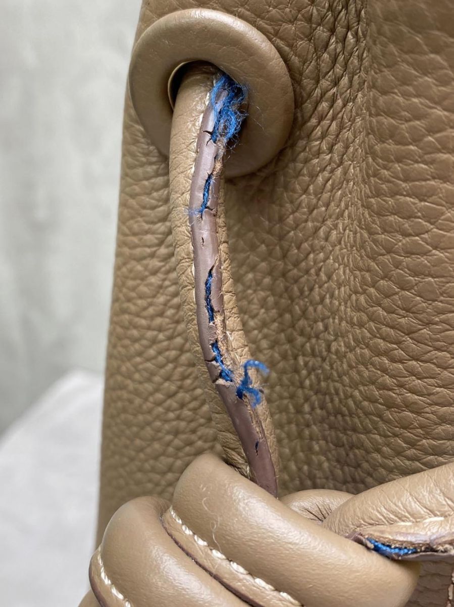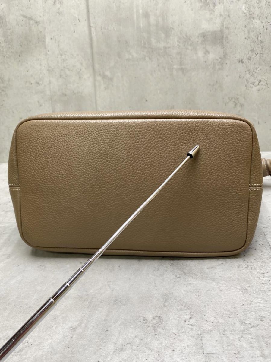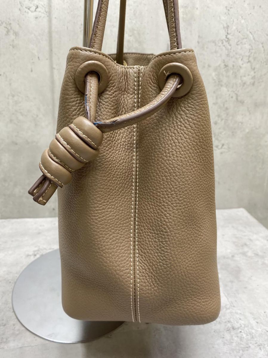 商品の状態 | 持ち手の結び目側にコバの破れ・中の素材の露出があります。 底面に汚れがあります。 使用感がございますが、まだまだ活躍してくれると思います。 (当方管理番号:syfg118155-t) | ||||||||