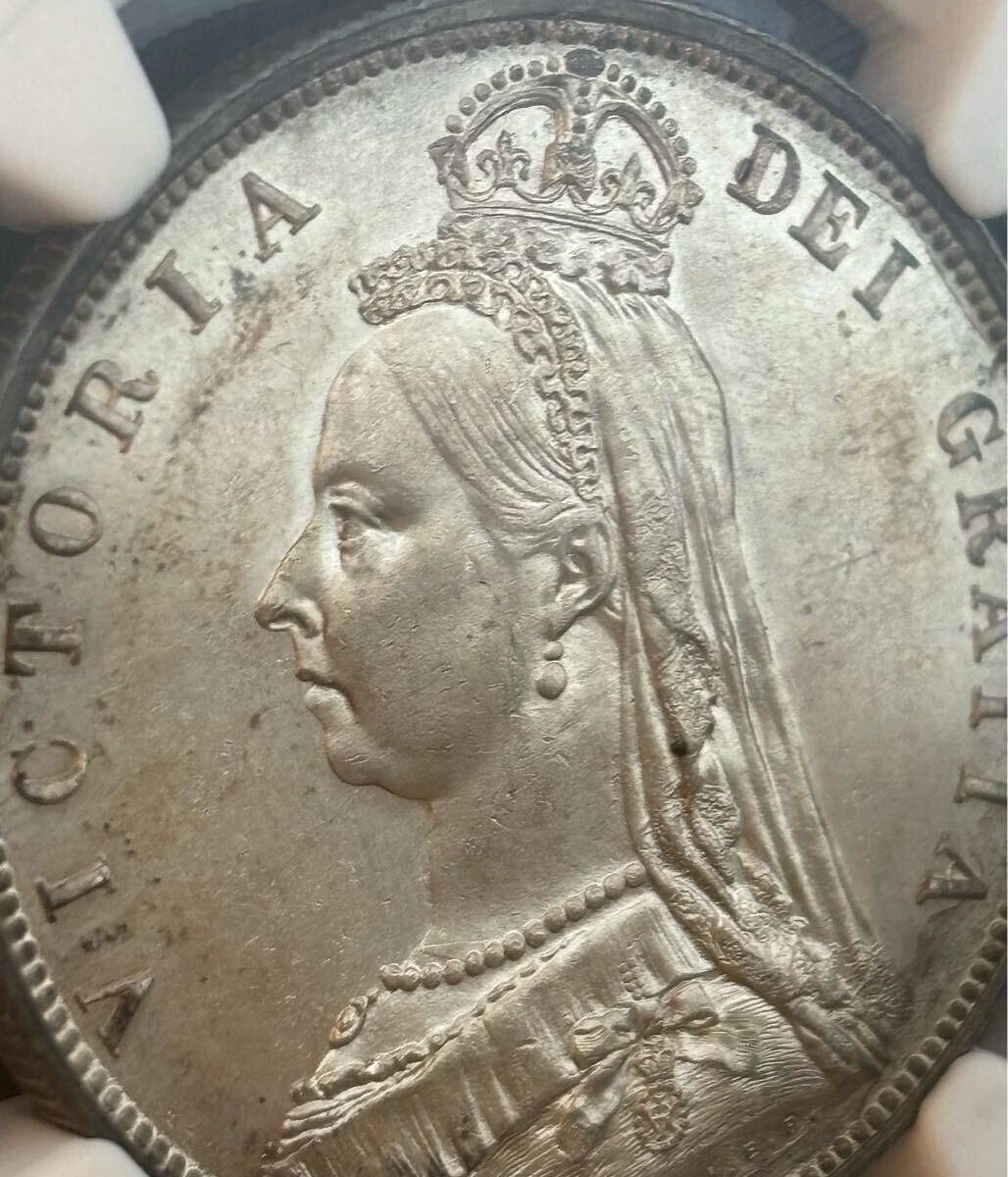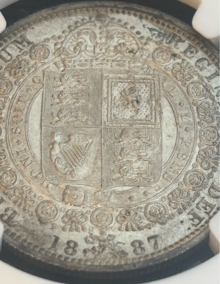 こちらは、1887年に発行されたイギリス・ヴィクトリア女王のハーフクラウン銀貨。