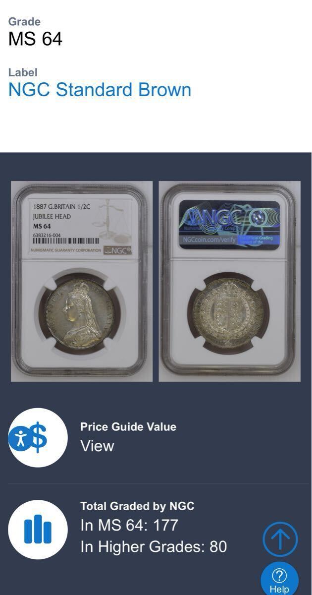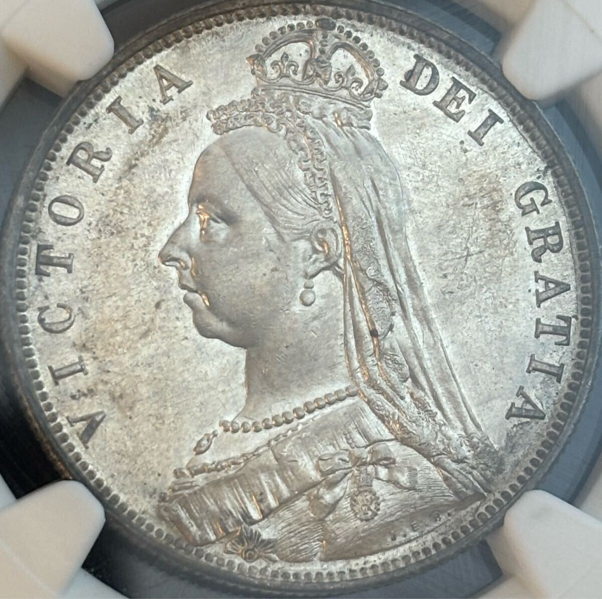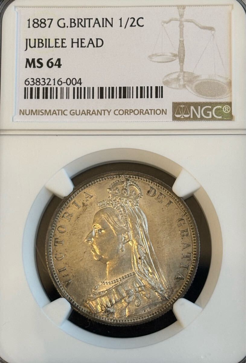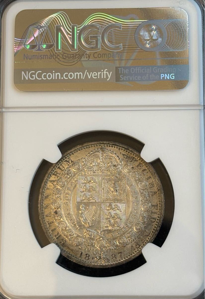 1887年 ヴィクトリア女王 ジュビリーヘッド ハーフクラウン銀貨 NGC MS64