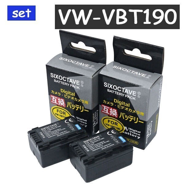VW-VBT190 VW-VBT190-K Panasonic パナソニック 互換バッテリ-2個set 純正充電器でも充電可能 カメラ本体での残量表示対応 HC-VX992MS