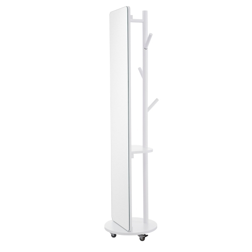 鏡 姿見 玄関 全身 おしゃれ ハンガーラック 収納 スタンド 回転 DIY 自撮り鏡鏡 ミラー 鏡 壁掛け鏡 全身鏡 飛散防止加工 【ホワイト】
