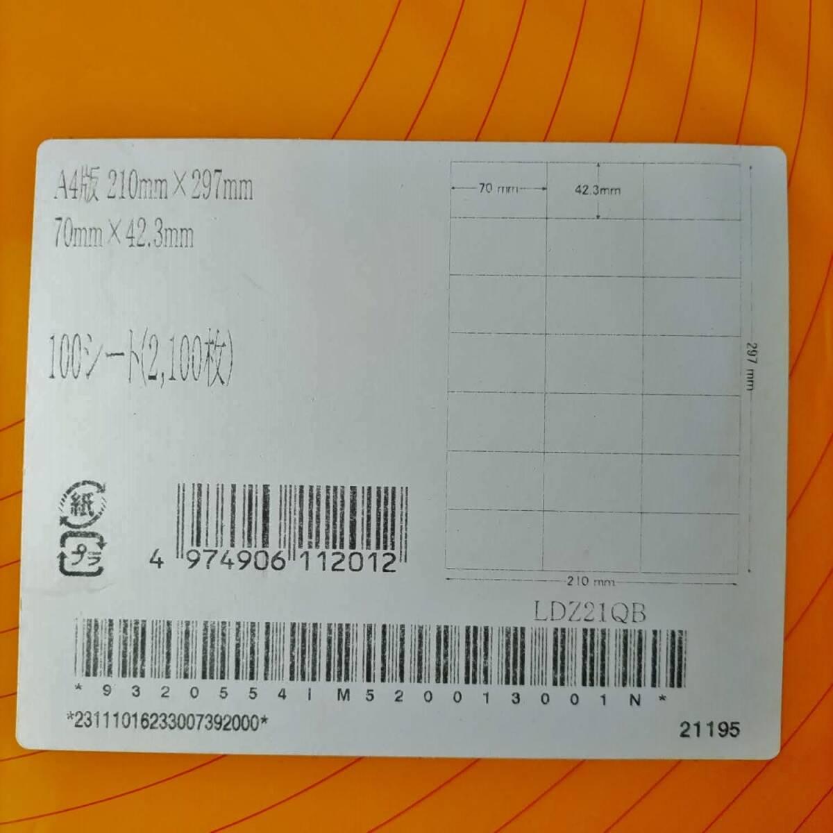 ◆【2点x100シート=200シート LDZ21QB ナナワード ラベルシール A4 21面 70mm×42.3mm】 東洋印刷